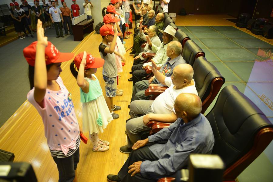 為抗戰(zhàn)老兵敬獻(xiàn)紅領(lǐng)巾