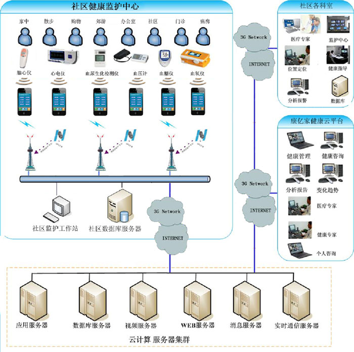 該系統(tǒng)實(shí)現(xiàn)對(duì)家庭個(gè)人,各級(jí)社區(qū)、基層醫(yī)院遠(yuǎn)程監(jiān)護(hù)聯(lián)網(wǎng)的信息采集、存儲(chǔ)、管理,同時(shí)提供監(jiān)護(hù)報(bào)告生成系統(tǒng)。